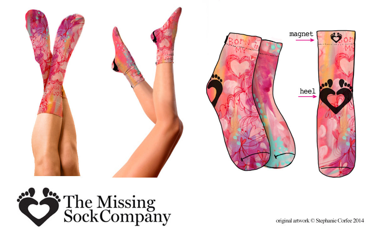 Born In My Heart- is SoleMate Sox's very first design collaboration featuring exquisite artist Stephanie Corfee. Each piece of her artistry is joyful, colorful, and tells an amazing, heart-felt story. We're thrilled to share this LIMITED EDITION, as part of our Love Wins collection.